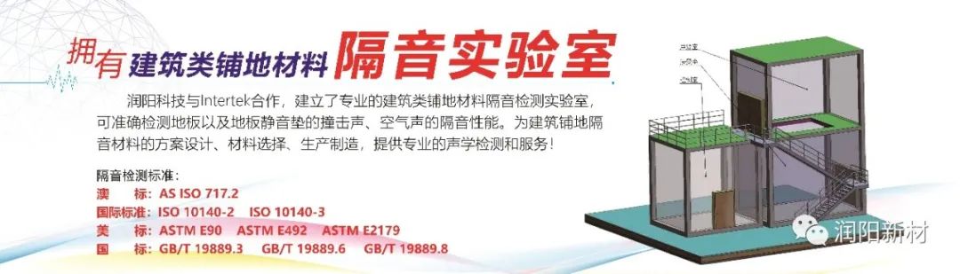 據(jù)了解,為了進(jìn)一步增強自身科研實力,更好服務(wù)下游客戶,潤陽科技與Intertek建筑工程事業(yè)部合作,建立專業(yè)的建筑類鋪地材料隔音檢測實驗室,可準(zhǔn)確檢測地板及地板靜音墊的撞擊聲、空氣聲的隔音性能。為建筑鋪地隔音材料的方案設(shè)計、材料選擇、生產(chǎn)制造,提供專業(yè)的聲學(xué)檢測和服務(wù)。